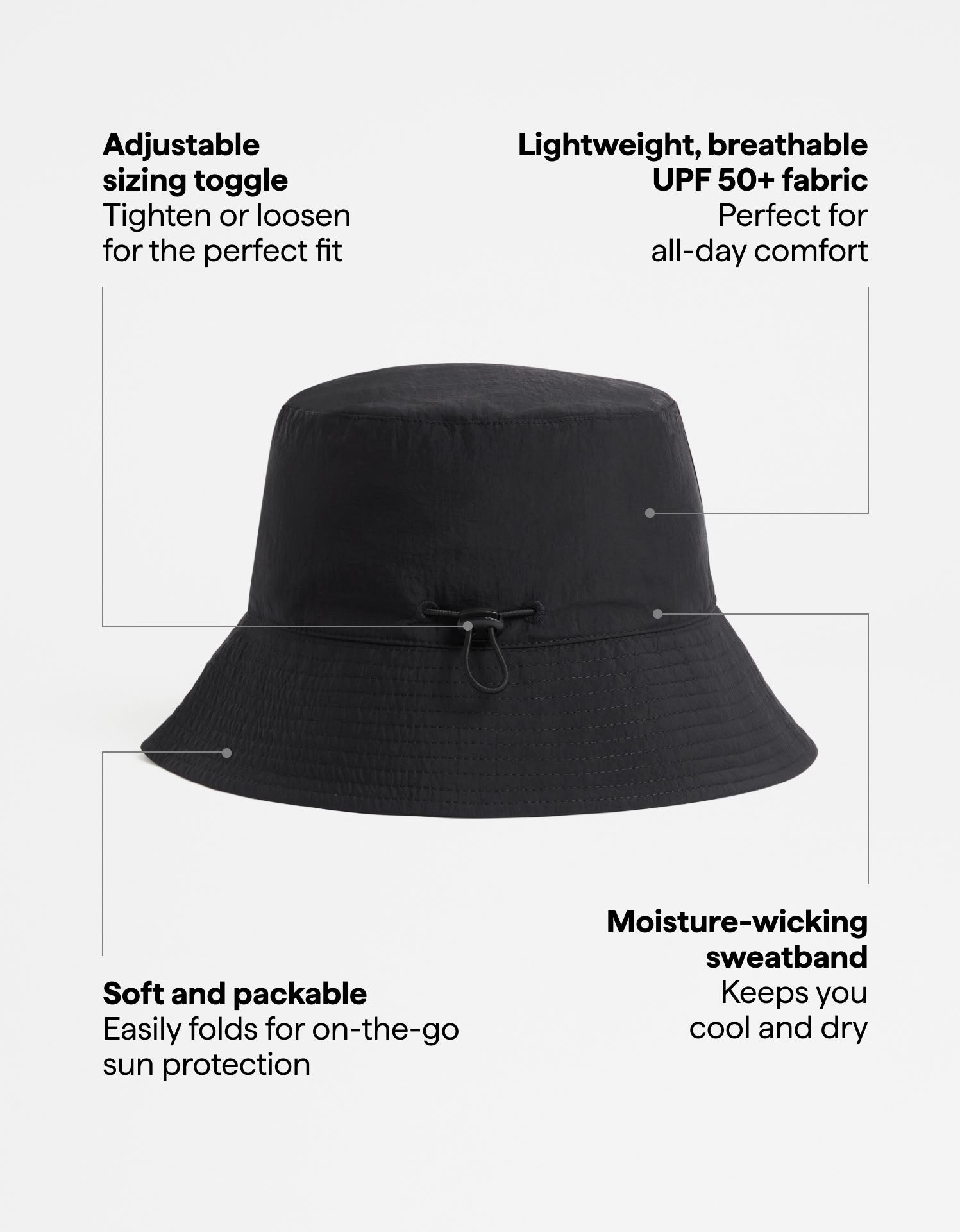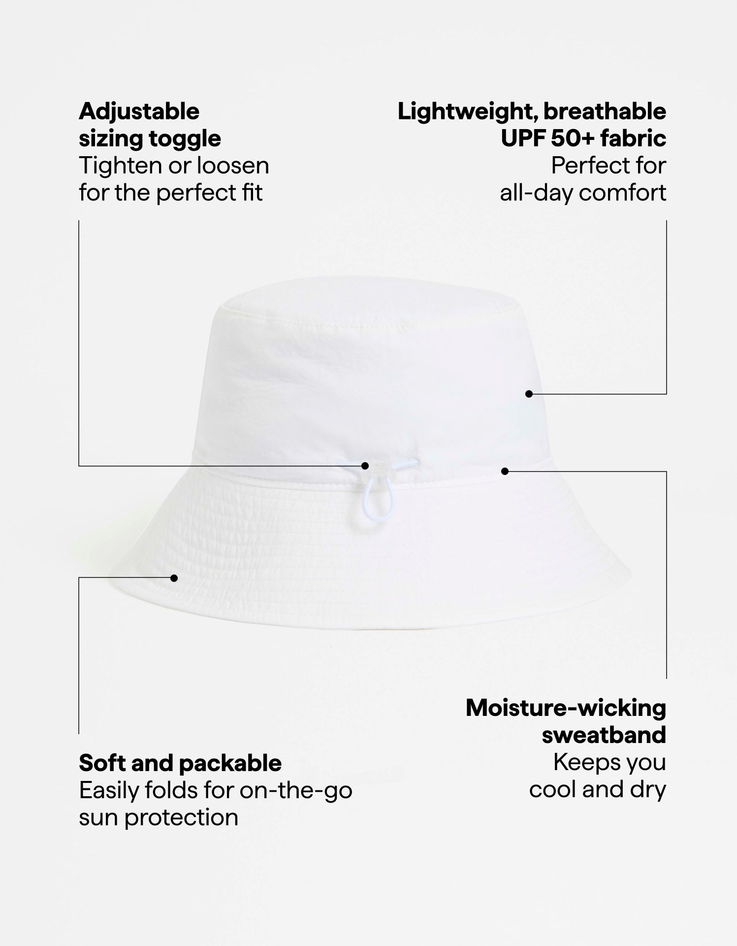 Bondi Bucket Hat is lightweight for all-day wear, weighing 2 oz