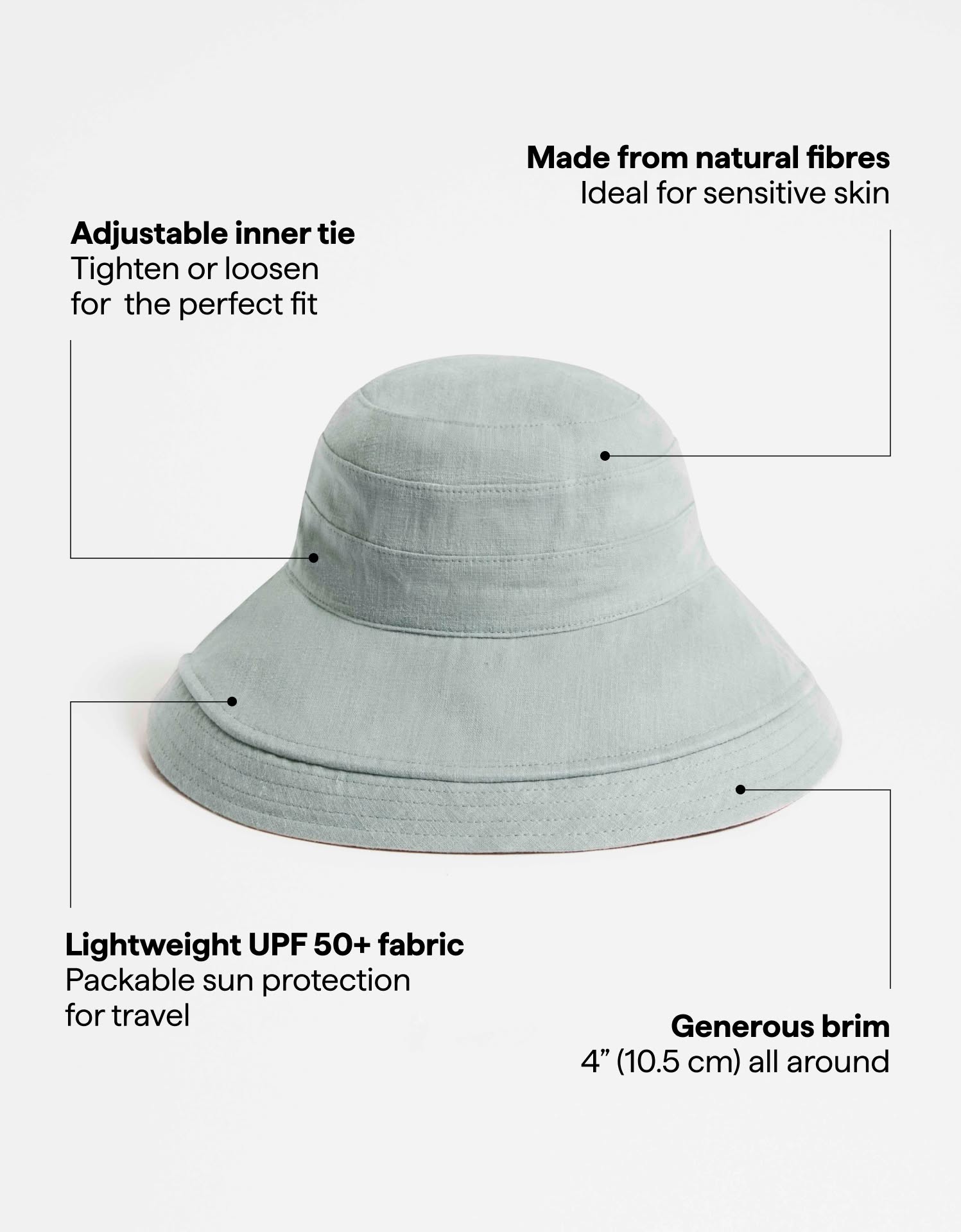 Our Holiday Sun Hat offers generous coverage with effortless style. Featuring an internal wire, the 4" (10.5 cm) brim is fully flexible and shapeable for a personalised look.