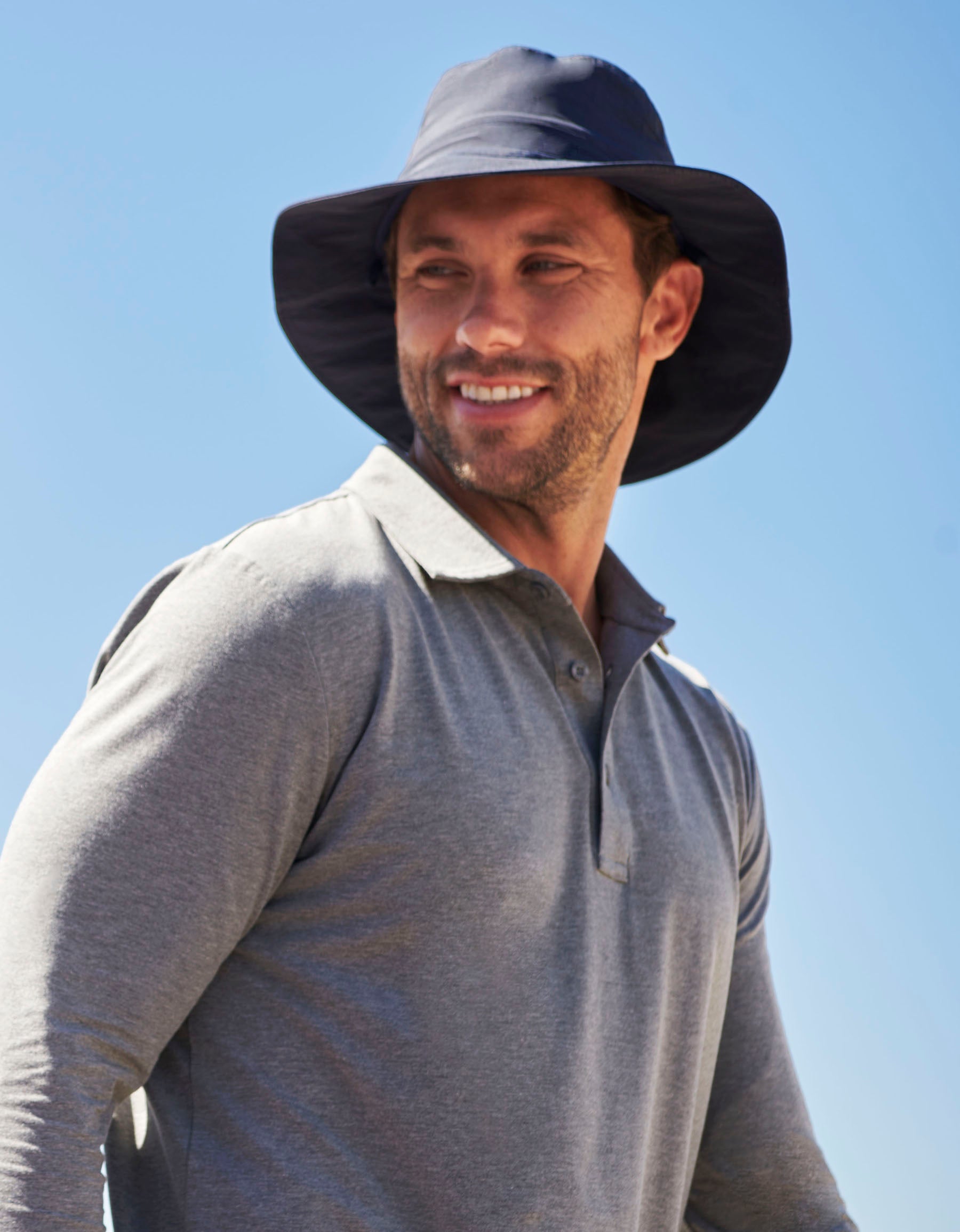 Designed for all-day adventures, the Men’s Expedition Sun Hat delivers UPF 50+ sun protection to help shield your face, ears, and neck from harmful rays. A 2.75" (7 cm) front brim and 4" (10 cm) back brim offer extended coverage where you need it most, while mesh ventilation panels and lightweight, breathable fabric keep you cool and comfortable. A built-in sweatband helps manage moisture, making this hat a dependable choice for hiking, fishing, and long expeditions.