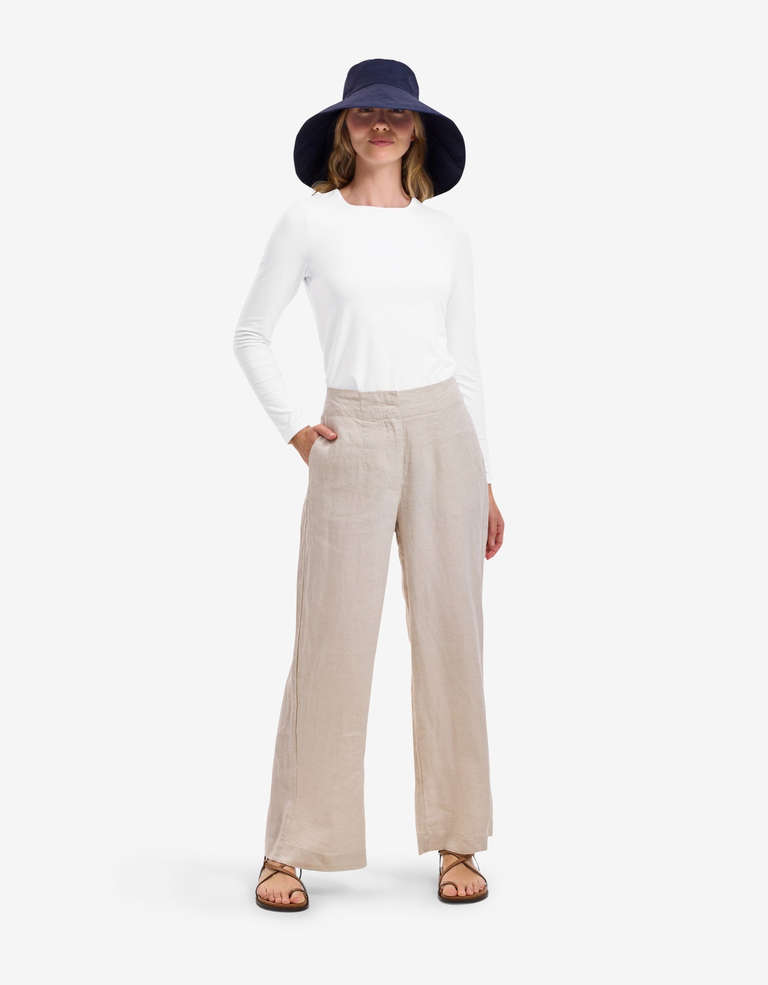 Lady wearing Solbari hat and rash top
